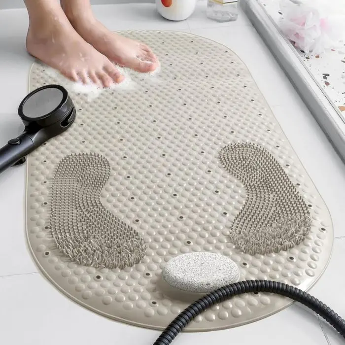 Descripción Alfombrilla de bañera antideslizanteCon piedra pómezMedidas: 80 x 40 cmColores gris y beige. Se envía surtido.