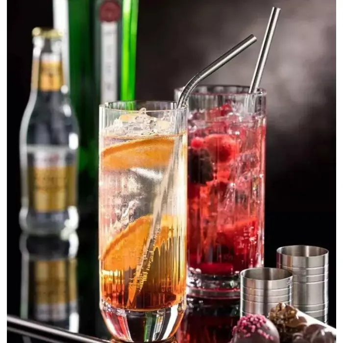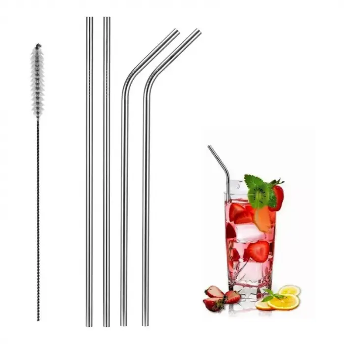 Juego de 4 sorbetes 2 curvos y 2 rectos de acero inoxidable